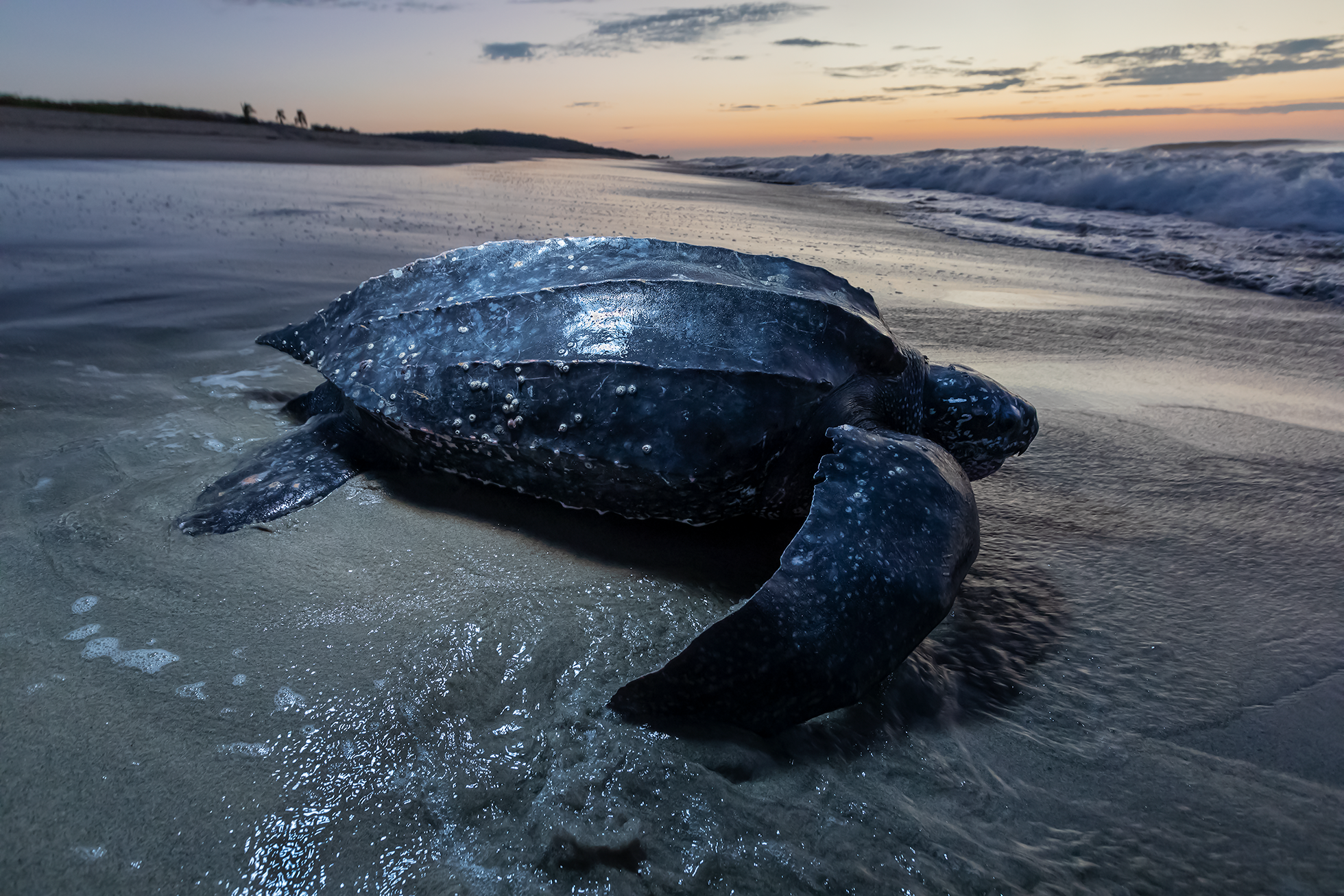 Mature leatherbacks are the largest sea turtle in the world, growing up to 1,500 lbs.